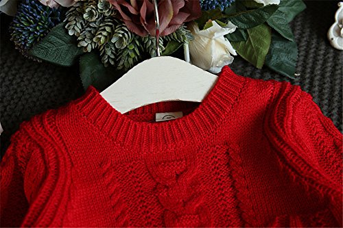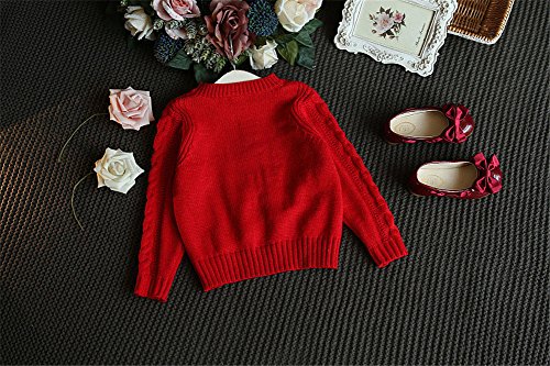 WIN ベビー ケーブルセーター 女児 女の子 子供服 長袖 ニットセーター クルーネック 毛糸セーター キッズ こども 秋冬着 通園 結婚式 発表会 お出かけ (110cm, レッド)