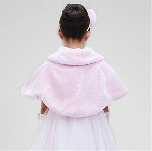 WIN 子供ケープ 子供ドレス ポンチョ ボレロ ファー ボレロ ポンチョ カーディガン ケープ フォーマル ガールズ キッズ 子供 結婚式 七五三 発表会 披露宴 パーティ (L(8-14歳), ピンク)