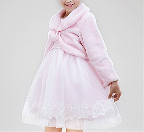 WIN 子供ケープ 子供ドレス ポンチョ ボレロ ファー ボレロ ポンチョ カーディガン ケープ フォーマル ガールズ キッズ 子供 結婚式 七五三 発表会 披露宴 パーティ (L(8-14歳), ピンク)