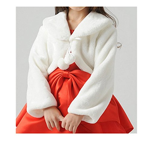 WIN 子供ケープ 子供ドレス ポンチョ ボレロ ファー ボレロ ポンチョ カーディガン ケープ フォーマル ガールズ キッズ 子供 結婚式 七五三 発表会 披露宴 パーティ (L(8-14歳), ホワイト)