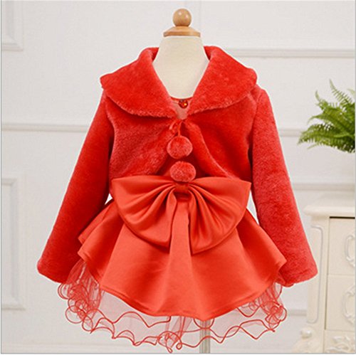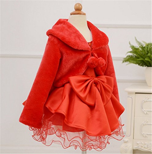 WIN 子供ケープ 子供ドレス ポンチョ ボレロ ファー ボレロ ポンチョ カーディガン ケープ フォーマル ガールズ キッズ 子供 結婚式 七五三 発表会 披露宴 パーティ (L(8-14歳), レッド)