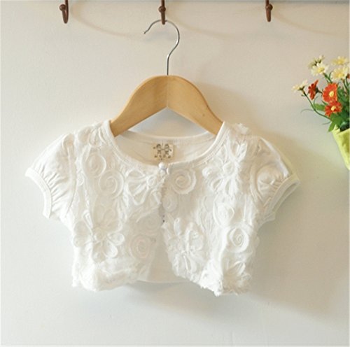 WIN ガールズ女の子 ボレロ カーディガン 半袖 子供 女の子 用 ホワイト ピンク 薄手 柔らか カーデ 女の子 フォーマルキッズ フォーマル ドレス 可愛い発表会 入園式 結婚式 パーティー (150cm, ホワイト)