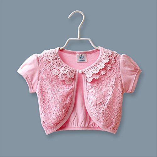 WIN ガールズ女の子 ボレロ カーディガン 半袖 子供 女の子 用 ホワイト ピンク 薄手 柔らか カーデ 女の子 フォーマルキッズ フォーマル ドレス 可愛い発表会 入園式 結婚式 パーティー (120cm, ピンク)
