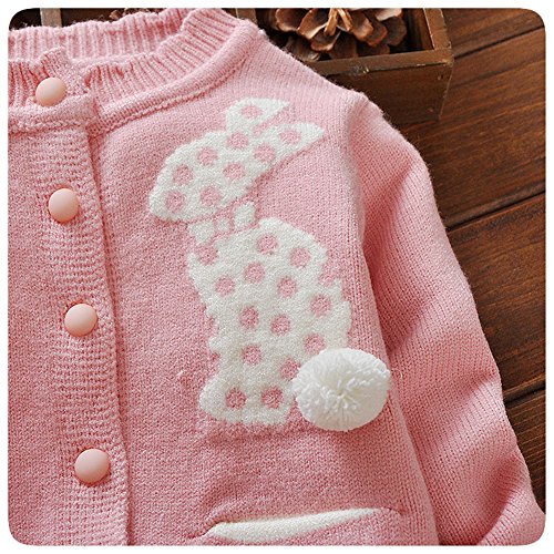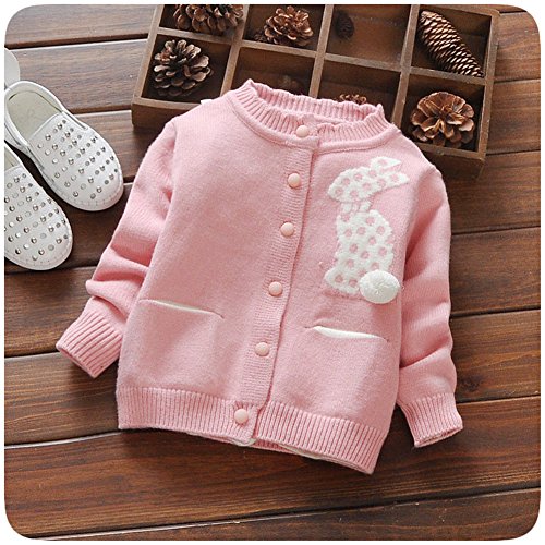 WIN 女児 女の子 子供服 長袖 ニットセーター ニット ウェア シャツ トップ セーター カーデ 春秋 可愛い おしゃれ着 冷房対策 お出かけ ニット (100CM, ピンク)