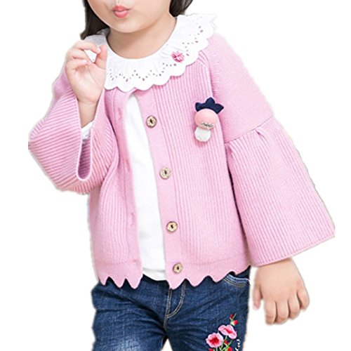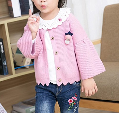 WIN 女児 女の子 子供服 長袖 ニットセーター ニット ウェア シャツ トップ セーター カーデ 春秋 可愛い お出かけ ニット コート ジャケット カーディガン 長袖 女の子 子供服 (ピンク, 100cm)