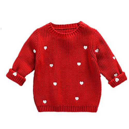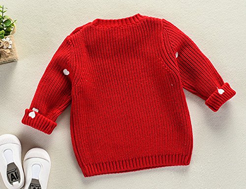WIN児 女の子 子供服 長袖 ニットセーター ニット ウェア シャツ トップ セーター カーデ 春秋 可愛い お出かけ ニット コート ジャケット カーディガン 長袖 女の子 子供服 (100cm, レッド)