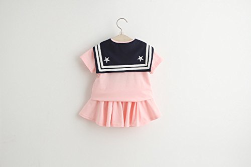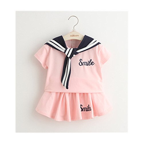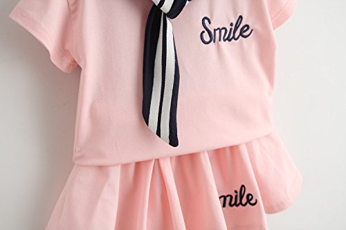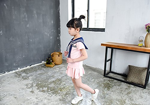 WIN セットアップ 女の子 子供服 女の子 長袖 ワンピース フレア スカート キッズワンピース キッズ ワンピース 入学 入園 子供服 キッズ 女の子 スカート+服 (120cm, ピンク)