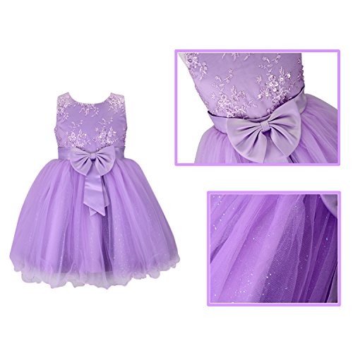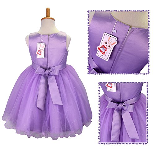 WOLFTEETH 子供 ワンピース 子どもドレス プリンセスドレス 女の子 ノンスリーブ 花柄 刺繍 お出かけ 結婚式 発表会 パープル 130cm 4027