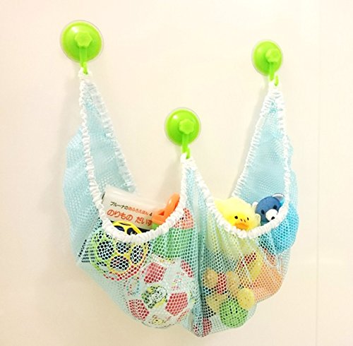 WSJ おもちゃハンモック お風呂 吸盤 強力 すっきり 清潔 抗菌 水切り良い 大容量 ネット メッシュ (S, ブルー)