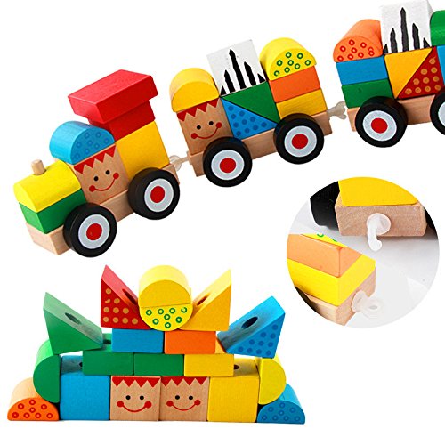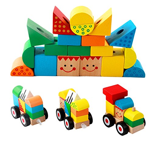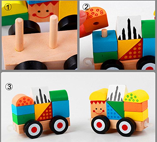 WTOR 汽車の積み木 知育玩具 ブロック 木のおもちゃ 積み木 積木 男 女 男の子 女の子 クリスマスプレゼント 誕生日 出産祝い ギフト 台車×3