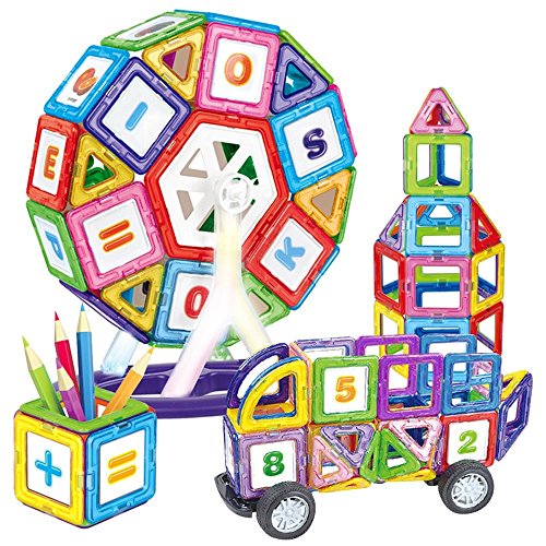 WTOR 知育玩具 磁石ピース 105ピース マグネットおもちゃ モデルDIY 磁石付き積み木 立体 パズル 図形つみき 子供用 磁石 積み木 創造力と想像力を育てる お誕生日、進学お祝いプレゼント (105ピース)