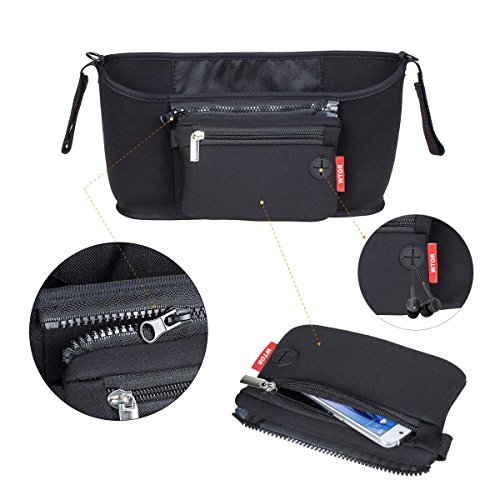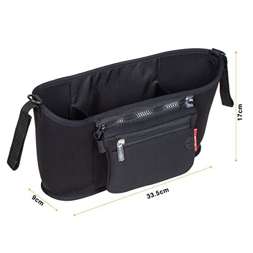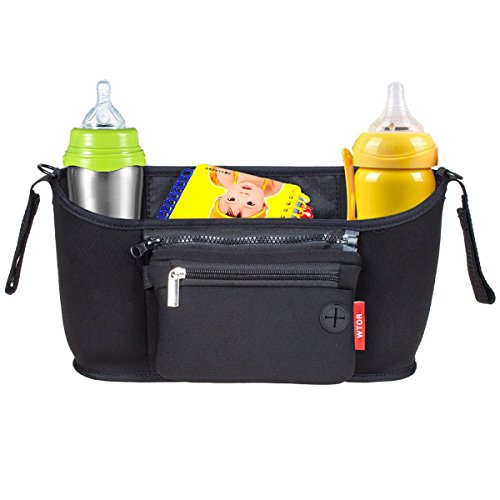 WTOR ベビーカー ドリンク ホルダー ネット バッグ 多機能小物入れ ベビーカー バッグ 収納 (黑色)
