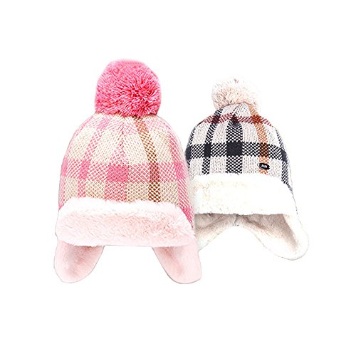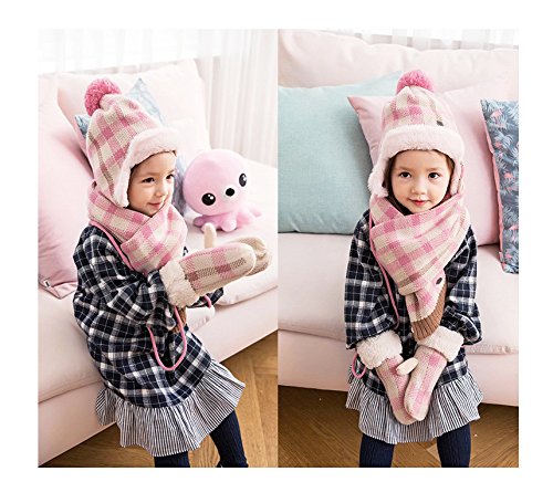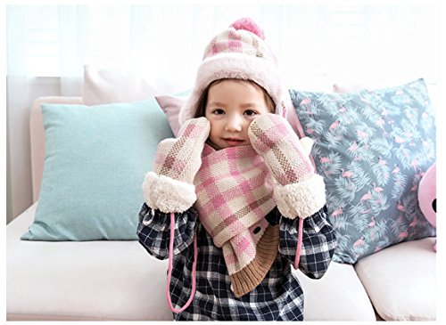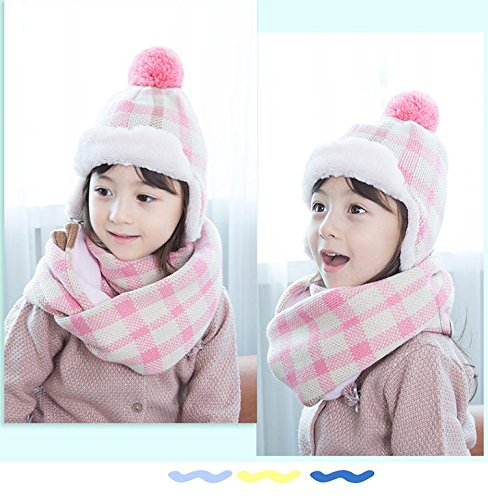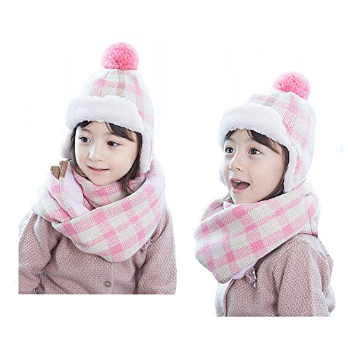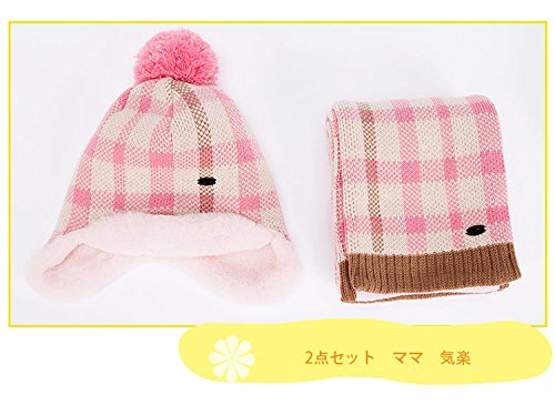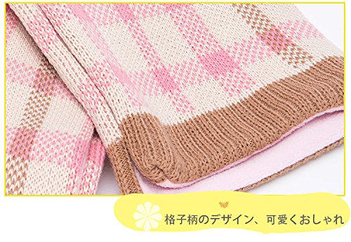 ニット帽子 マフラー 2点セット 女の子 毛糸 格子柄 ふわふわ キッズ 男の子 かわいい 防寒 秋 冬 ベビー用 ハット 小学生 男女兼用 防寒対策 ギフトに最適 (帽子&マフラー(2点)セット, ピンク)
