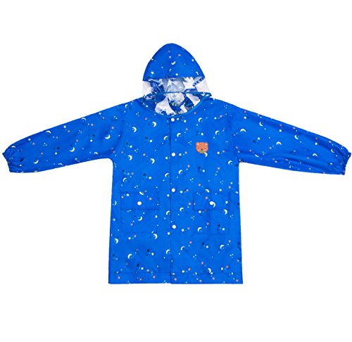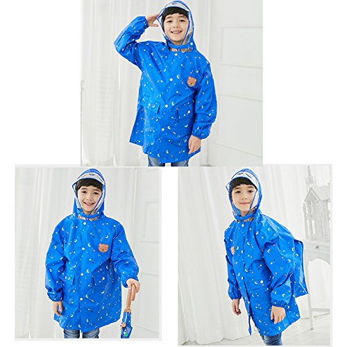 レインコート女の子 男の子 キッズ バイザー付き raincoat 子供用 防水 カッパ リュック 対応 通学 雨具 携帯ポーチ 付き (L(130-150cm), ブルー)