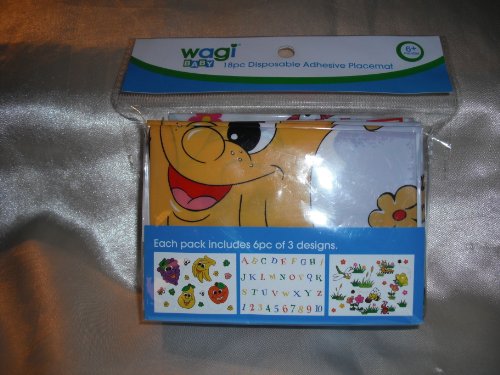 Adhesive, disposable placemats;Includes 3 designs: fruit, alphabet, and garden;Recommended for ages 6 months and up