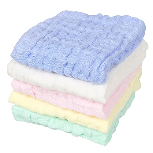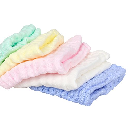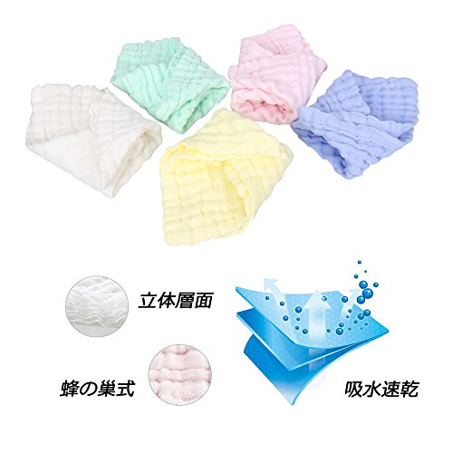 Walant ベビー用タオル ガーゼハンカチ 赤ちゃん用 6層ガーゼタオル ベビービブ 柔らかいフェイスタオル ガーゼタオル 吸水速乾 コットン100% 5枚セット