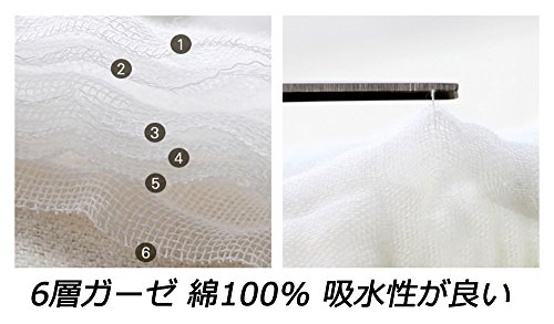 - 快適な着用感:綿100%使用、軽くてふわふわな肌触りが特徴の6重ガーゼ。空気の層が出来るのでボリューム感があるのに軽いのが特長です。