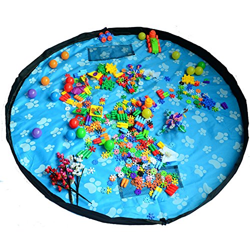 Walant おもちゃ収納袋 収納マット 超大キッズマット お出かけに便利 レゴ収納 多用途 直径100cm (ブルー 100cm)