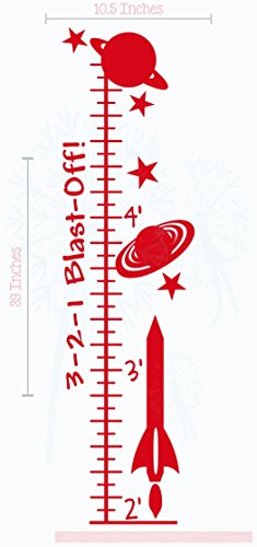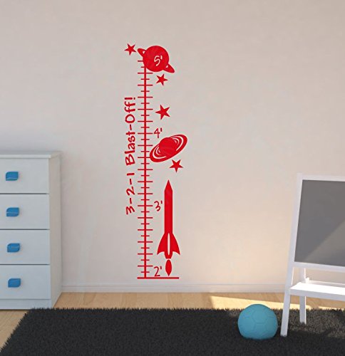 BlastオフRocket Growth Chartビニールデカール男の子壁装飾ステッカーアート 10.5x39 レッド WDPM4179