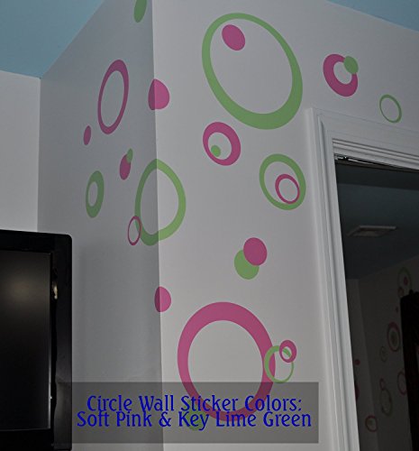 Our Wall Circle, Rings and Dots Stickers are made with top-of-the-line INDOOR MATTE finish wall vinyl. The vinyl sticker will not harm your painted or wallpapered walls. Our Circles are easily removable just by peeling them off. The matte finish makes the stickers look like a beautiful paint job on your wall! The Wall Sticker Circles work well on textured walls also. Detailed application instructions included with order. At application the backing gets peeled off and the circle gently placed on the wall, then firmly rubbed.Please wait 2 weeks after painting to apply wall stickers Proudly made in the USA by Wall Decor Plus More