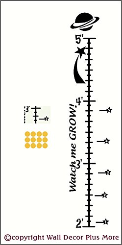 Space Growth Chart Vinyl Decal - Perfect for an aspiring astronaut! The chart begins measuring at 2 feet and goes up to 5 feet.Application instructions included. Growth Chart Wall Decals make a neat baby gift! A mark is displayed on the chart for each inch. Use the included Star Markers to mark your child's growthThis Wall Vinyl Sticker is safe for Home Decor use, is easily removable without harming your wall surface but is not reusable.The matte finish makes it look like it is painted on!Detailed application instructions included.Our Wall Stickers are die-cut decals - they are NOT a printed design on a clear plastic piece.They can be applied to any smooth or semi-smooth surface. A squeegee is a handy tool to have for application.Exclusive of Wall Decor Plus More and Made in the USA.