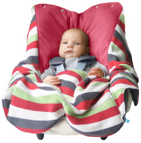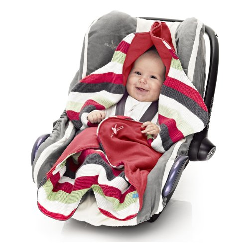 Multi-use receiving blanket: for use with car seats, strollers, and joggers, baby bouncers, as play mat;Elegant super soft 100% cotton with knitted cotton inner;Perfect blanket for travelling; All-weather warmth, yet light enough for summer nights;Blanket measures 34 34;Velcro fastenings to keep the baby blanket securely in place