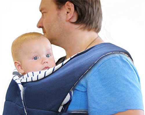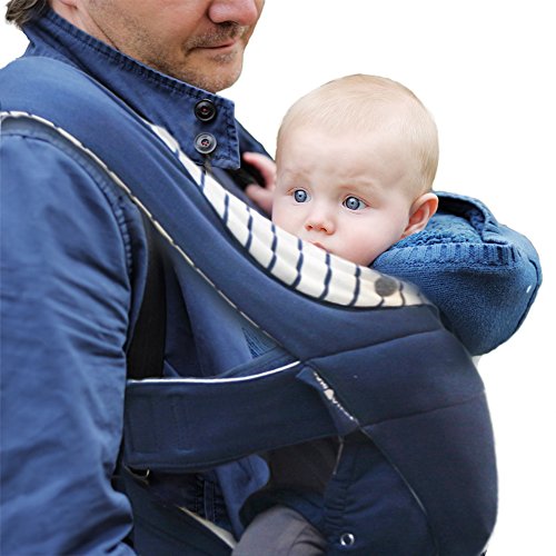 Wallaboo Infant Baby Carrier Cross, Front Carrier for Newborn, 100% Cotton, Ergonomic and easy to use, Blue/white striped