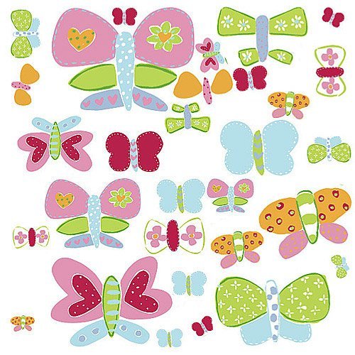 15218 Features: -Pre-pasted, vinyl coated, strippable wallpaper.-Easily applied to most smooth surfaces.-Submerge in water for 60 seconds, remove the piece from the water, drain off excess water and apply.-Acid and lignin free.-Washable. Includes: -Each package comes with 2 sheet mural which includes 8 large butterflies 11.5'' by 7.75'' to 22'' by 15.5'', 10 medium butterflies 6.5'' by 3.5'' to 9.25'' by 6'', and 10 small butterflies 3.25'' by 1.75'' to 6.5'' by 4.25''.