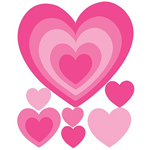 Big Wall Stickers Our Hears-in-Heart peel and stick vinyl decals are from our Wallies Big Wall Stickers line. Includes 12 assorted hearts in different shades of pink, and range in size from 2-7/8' x 2-5/8' to 15-1/4' x 14'. Decorate bedrooms, playrooms, the home office, apartmentsツ?or dorm rooms, or just about anywhere you want. Wallies can be used over and over again! They・?・re fast, easy, have a secure grip and are removable! About Wallies Enjoy decorating your walls with our wide variety of peel and stick, vinyl-coated decals or our wonderful assortment of chalkboard designs. In just a few minutes, you can really perk up your surroundings. And whenever you want to, you can just as easily change your environment with a different Wallies Peel & Stick design.ツ? Every Wallies design is made of durable, self-adhesive backed vinyl that can be removed and repositioned easily. To use, simply peel the pieces off of their backing and apply to any clean, smooth surface. Vinyl decals for the pantry, home office and playroom. Change your room dテゥcor in seconds! Removable and repositionable. Easy to remove, safe for most surfaces. Leaves no sticky residue. We offer an extensive variety of Wall Play items, such as alphabets, solar systems and dinosaurs, which are educational and fun. Kids love to interact with these products, easily arranging them for hours of fun. Wallies has wonderful wall decor for kids in a variety of designs for babies・?・ rooms and for kids・?・ rooms, and more grown-up designs for living rooms, dining rooms and kitchens. From growth charts and murals, to message chalkboards and chalkboard labels, from playful fantasy to needed utility, Wallies has something for everyone in easy-to-use, easy-to-reuse, decals. With Wallies・?ヲ. The possibilities are endless! Product Disclaimer: Only authentic Wallies Peel & Stick Wall Decals are manufactured and shipped from the United States in Wallies branded packaging.