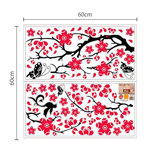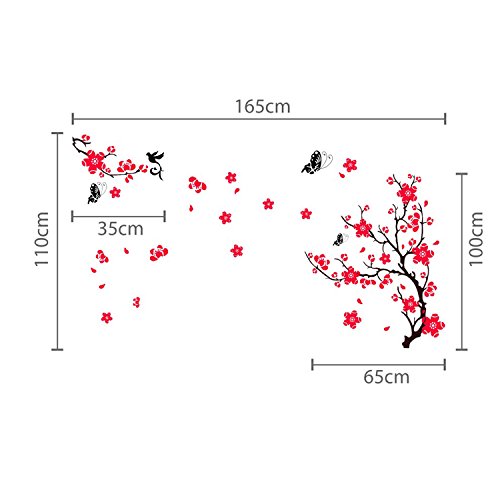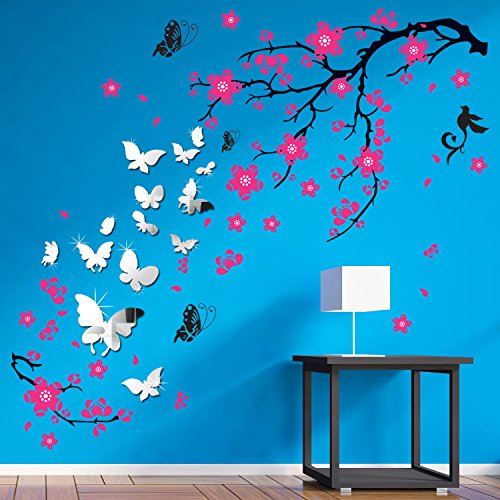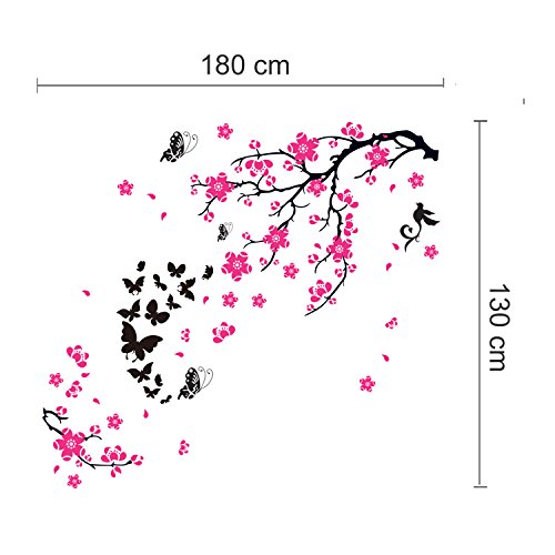 取り外し可能な自己粘着ウォールステッカーピンクBlossomフラワー蝶ミラー壁アートデカールビニールホーム装飾DIYリビングベッドルーム飾り壁紙子供部屋ギフト180 x 130 CM、マルチカラー