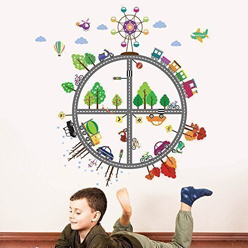 Walplus Wall Stickers Kid's Transports II Removable Self-Adhesive Mural Art Decals Vinyl Home Decoration DIY Living Bedroom Office Dcor Wallpaper Kids Room Gift by Walplus