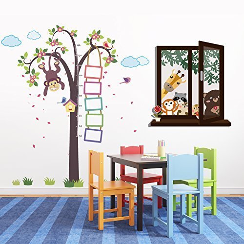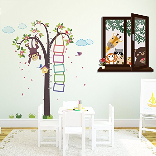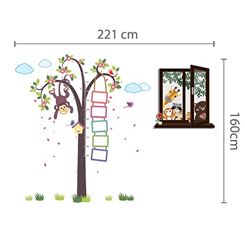 Walplus Removable Wall Stickers Nursery Monkey Height Measure + Window View Of Animal Friends, Nursery Kid's, 221Cm X 160Cm, Multi - Colour [並行輸入品]