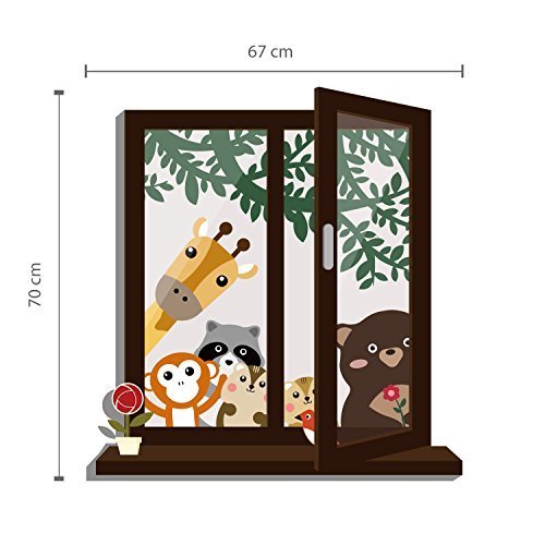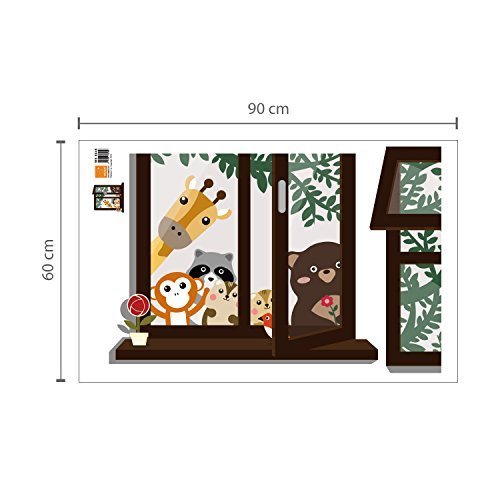 Walplus Removable Wall Stickers Window View Of Animal Friend + Little Chick Grass, Nursery Kid's Room, 160Cm X 150Cm, Multi - Colour [並行輸入品]