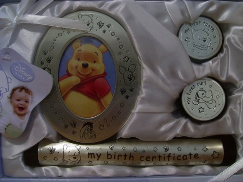 4 PIECE SET - Winnie The Pooh Frame, First Curl, First Tooth & Birth Certificate Holder - Silver / Pewter Tone by Walt Disney Winnie the Pooh