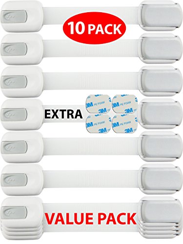 Child Safety Locks -VALUE PACK (10 Straps)- No Tools or Drilling -Adjustable Size/Flexible -Adhesive Furniture Latches For Baby Proofing Cabinets, Drawers, Appliances, Toilet Seat, Fridge, Oven & More [並行輸入品]