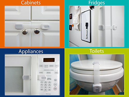 - MULTI - PURPOSE SAFETY STRAPS WITH DOZENS USES: Make sure that your baby or toddler is safe by securing cabinets, appliances, drawers, refrigerator, trash bin, toilet seat and more. With these amazing locks you can also keep your stuff neatly organized as your curious child cannot reach it! Use them to secure your wardrobes or storage cupboards and save yourself time from tidying up!