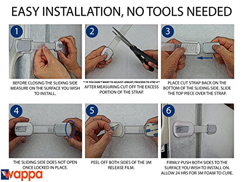 - SUPER EASY TO INSTALL: With these great straps you can make your home childproof hassle free! Thanks to the adhesive strong industrial grade 3M tape they have on both sides, you can install and remove them within seconds. No drilling or any special tools needed! And don't worry about your furniture, these straps leave no residue and won't cause any damage to it!