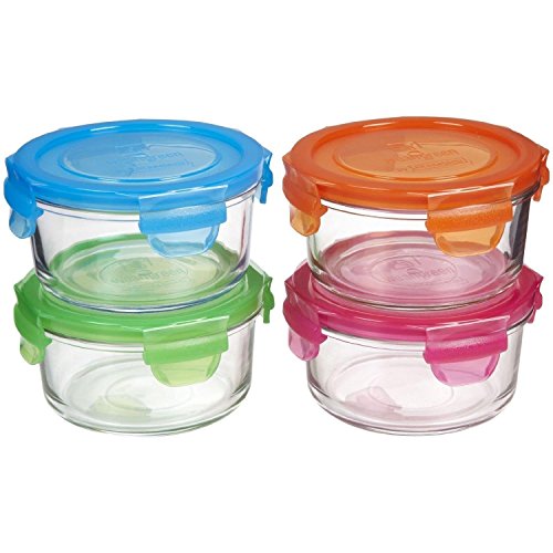Wean Green Garden lunch bowls, set of 4, multi-colored tempered glass food containers with leak proof lids.