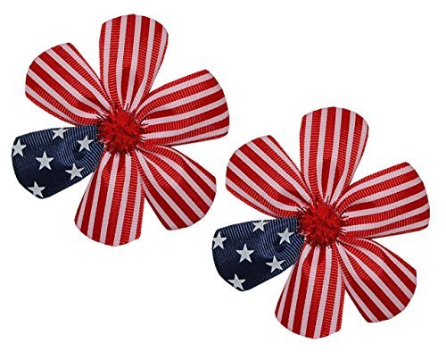 wd2uベビー女の子2アメリカ国旗レッドホワイトブルーフラワーヘアリボンワニクリップ