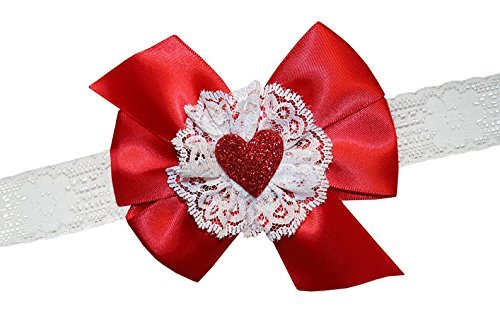 wd2u赤ちゃん女の子レッドサテン&レースGlittered Heart Valentinesヘアリボンヘアバンド