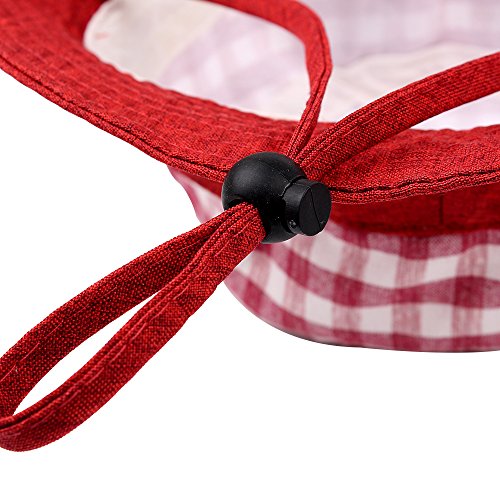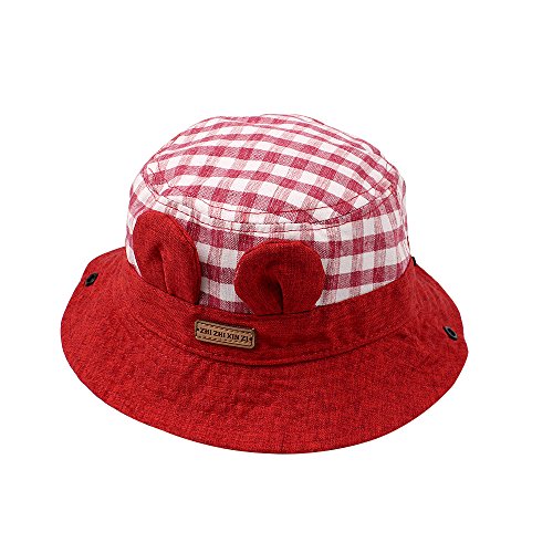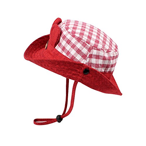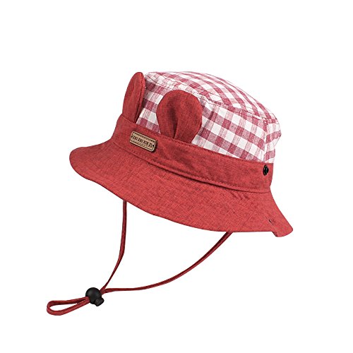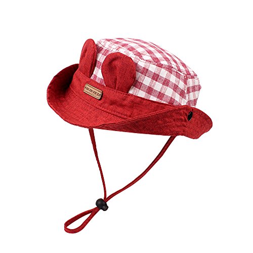WeddingPachベビーひよけ帽子 バケットハット ユニセックス 耳当て飾り かわいい チェック柄 ひも付き 脱げない 1-3歳赤ちゃん用ハット 春 夏 秋