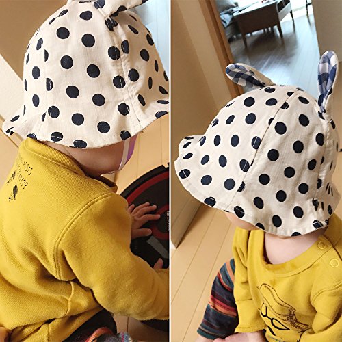 WeddingPach赤ちゃん帽子 ひよけ バケットハット ユニセックス 水玉柄 かわいい 通気性抜群6-18ヶ月 キッズハット 春 夏 旅行 外出用 (ネイビー, 6-18ヶ月)