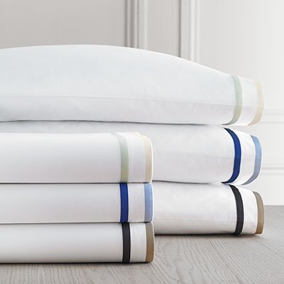 King sheet set includes: One flat sheet (110" x 102"), one fitted sheet (78" x 80") and two pillowcases (40" x 20"). 100% percale cotton with a 300 thread count. Solid white sheet with a double green banded hem print. Fitted sheet pocket is 16". Machine washable.