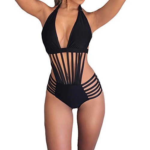 ネック水着ビーチウエア水着をぶら下げ新しいホット女性ワンピーススプリットビキニのセクシーな包帯 (L)