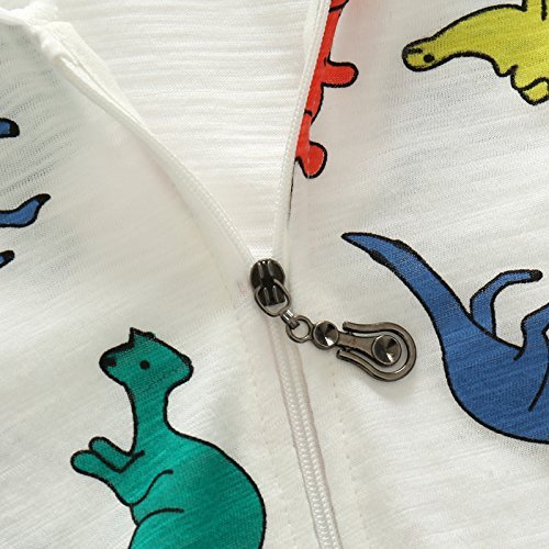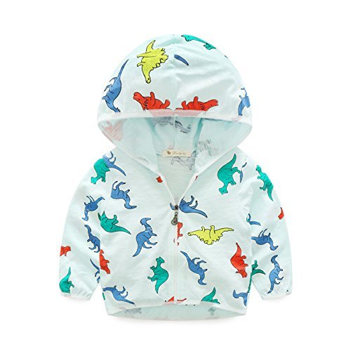 [TinyCute]キッズ UVカットパーカー 長袖ラッシュガード 赤ちゃん 夏 男の子女の子 80~90cm 軽量薄手 綿100% 羽織 カーディガン ジャケット アウター (恐竜柄(薄い水色))