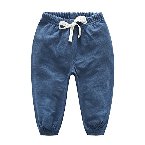 ベビー用ロングパンツ 赤ちゃん長ズボン キッズボトムス 子供 男の子 女の子 涼しい 綿100% 春 夏 秋 動きやすい 可愛い 薄手 蚊や虫の防止 青 紺 グリーン 90cm (紺)