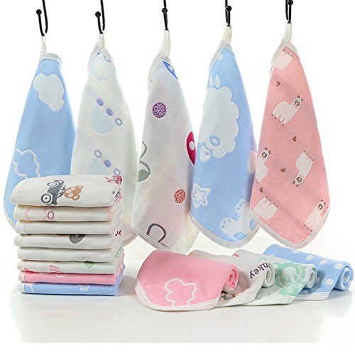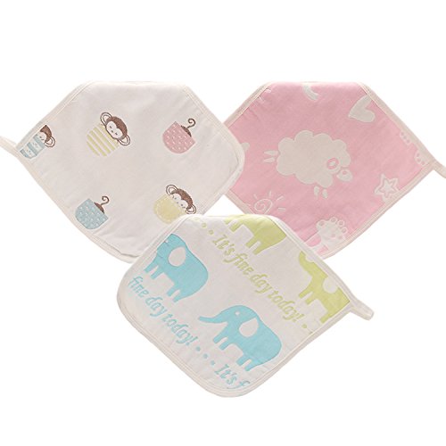 UEK ガーゼハンカチ ベビーハンカチ 6重ガーゼ ループ付 綿 フェイスタオル 子供 ハンドタオル セット 3枚入