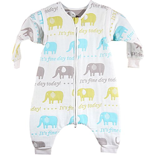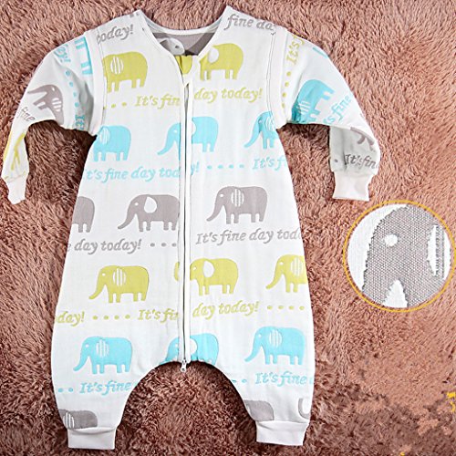 UEK 6重ガーゼ スリーパー パジャマ 袖外せる 2Way ベビー 寝袋 100%綿 長袖 通気 子供 赤ちゃん (XL, 象柄)