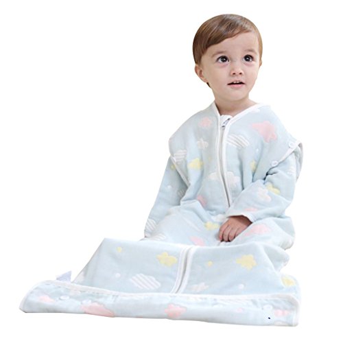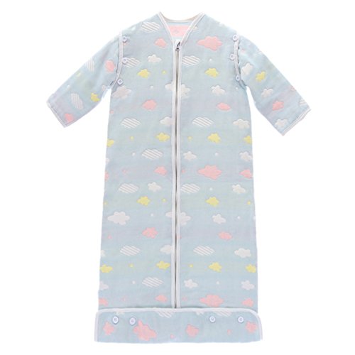 UEK 子供 ベビー スリーパー パジャマ 袖外せる キッズ 寝袋 封筒 6重ガーゼ 雲柄 100%綿 長袖 通気 赤ちゃん ギフト 出産祝い (XL, ブルー )