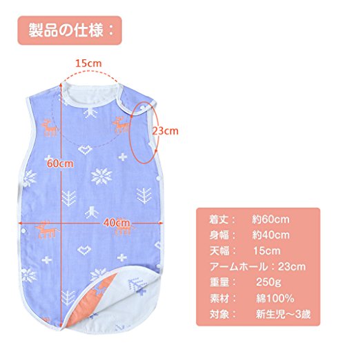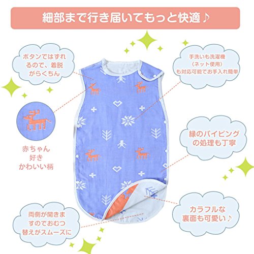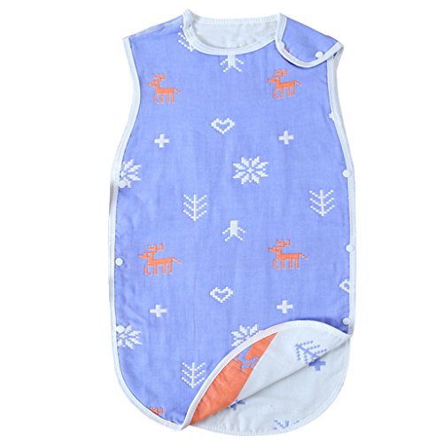 UEK ふわふわ6重ガーゼスリーパー 寝冷え防止 ボタン開閉式 吸水性・通気性・吸湿性・速乾性 夏冬 冷暖房対策 40 * 60 cm(新生児~3歳頃) (ブルーエルク)